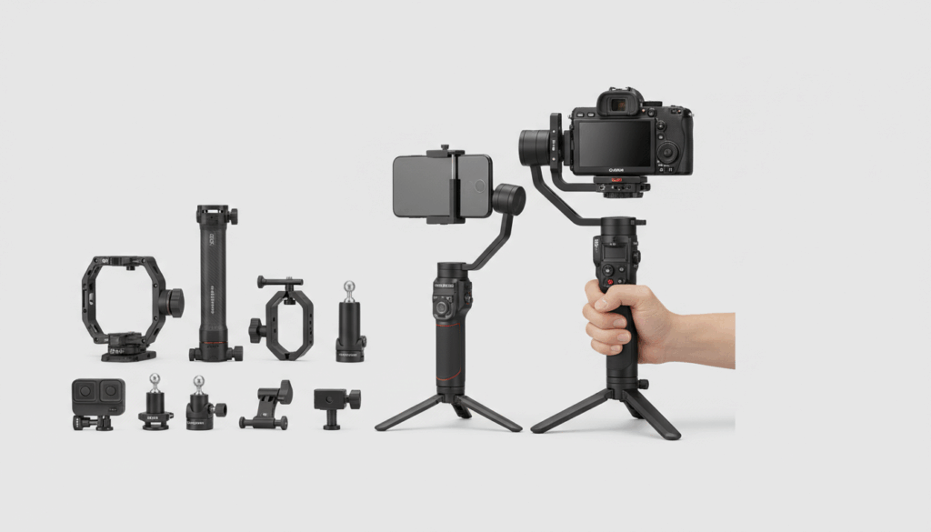 Gimbals er motoriserede stabilisatorer til kameraer og smartphones, der balancerer udstyret i tre akser og fjerner rystelser. Det giver jævne, professionelle optagelser, selv under bevægelse.