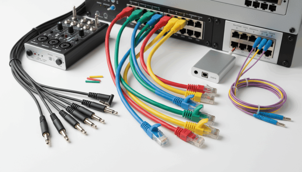 Patchkabler er korte, robuste forbindelser, der giver hurtig og ryddelig kabelføring mellem udstyr i netværk, lyd og testmiljøer. I denne kategori finder du kobberpatchkabler med RJ45-stik til Ethernet, lydpatchkabler med 6,3 mm jack til instrumenter og mixere samt fiberpatchkabler med LC- eller SC-stik til højhastighedsnetværk. Der findes vinkelforbindelser til trange rum, og længderne spænder fra få centimeter til flere meter. Skærmtyperne varierer fra UTP til FTP/S-FTP og påvirker støjbeskyttelse og holdbarhed.