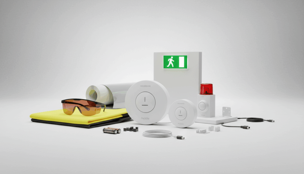 Variationerne spænder fra optiske røgalarmer, kuliltealarmer, sikkerhedsbriller og advarselsudstyr som flugtvejsskilt og sireneenheder. For en sammenhængende løsning kan du vælge produkter fra relevante partnere og få professionel vejledning ved behov. BatteryStore & More og EL & VVS Centeret støtter udstyr, installation og vedligehold.