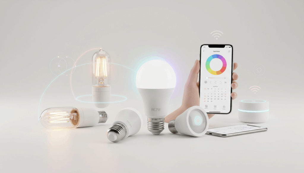 Typiske varianter omfatter dæmpbare hvide pærer og farveskiftende RGBW-modeller. Farvetemperatur og høj farvegengivelse gør dem velegnede til både rolig afslapning og koncentration. Fælles fatninger er E27, E14 og GU10 og tilbydes i forskellige designs, fra runde kugler til dekorative filamentudgaver. Brug dem til stemningsbelysning i stuen, læsning i soveværelset eller kontoret.