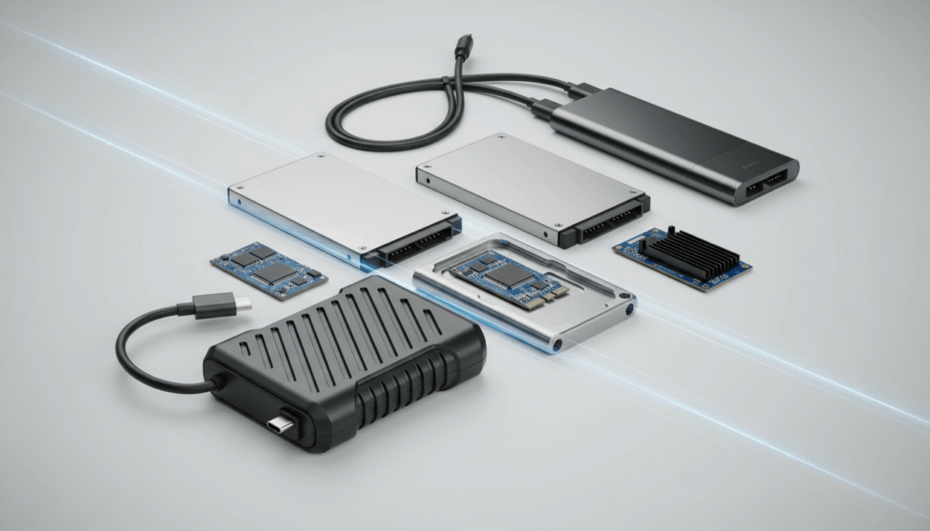 Overvejelser ved køb inkluderer hvilken formfaktor du har i maskinen (2,5-tommer drive vs M.2), om du har SATA eller PCIe/NVMe-muligheder, og hvilken kapacitet du har brug for. Eksterne USB-SSD’er er praktiske til backup og dataflytning, mens interne drev som NVMe giver, især for gaming og professionelt arbejde, ekstra hastighed. Forud for køb kan du se udvalg hos Proshop.dk og SD Teknik for inspiration og kompatibilitet i dit setup.