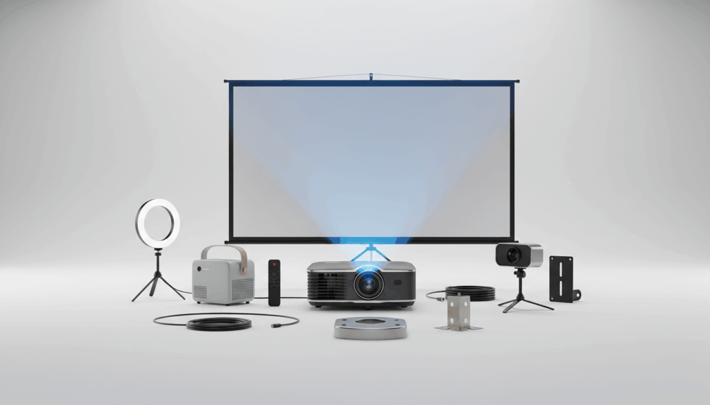 Streaming & Projektorer omfatter projektorer i forskellige varianter (hjemmekino, kortkaste og portable modeller), projektorlærreder og monteringsløsninger til loft eller væg, samt tilbehør som fjernbetjeninger og beslag. Kategorien inkluderer webcams og belysning til streaming, så dit setup får klare billeder og god stemning. Ved køb af projektorer er nøglefaktorer lysstyrke (ANSI-lumen), opløsning og kontrast, samt throw-forhold. Overvej format (16:9 eller 4:3) og om lærredet er manuel eller motoriseret. Egner sig til hjemmebiograf, præsentationer og live-streams. Proshop.dk og Koz.dk