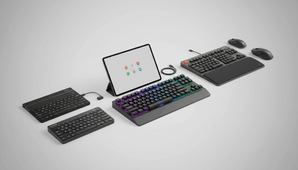 Trådløse tastaturer dækker fuld størrelse og kompakte modeller, der forbindes via Bluetooth eller 2,4 GHz USB-modtager. I denne kategori finder du tastaturer til PC og tablet samt multi-device setups, ofte med mulighed for at skifte mellem enheder. Variationer som 60–65–70% kompakte modeller, tastaturer med indbygget touchpad eller folio-sæt er også almindelige. Overvej layout (Nordisk vs. US), rækkevidde, batterilevetid og ergonomi. Backlight, medietaster og om det er mekaniske eller membran-tastere er relevante. Proshop.dk og AV-ZHOP.dk har bredt udvalg.