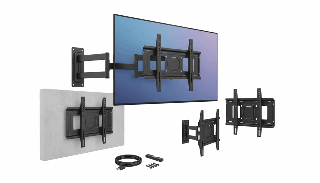 TV-vægbeslag er kategorien af monteringsløsninger til sikkert at hænge dit TV på væggen. Her finder du faste, tiltede og fuldt bevægelige beslag samt mere robuste vægbeslag til større TV'er. De dækker TV-størrelser fra ca. 23 til 80 tommer og understøtter typiske VESA-konfigurationer som 75x75, 100x100, 200x200 og op til 400x400 mm. Mange modeller inkluderer kabelstyring og nem installation, så dit setup får et rent, stilfuldt look og optimal visning fra enhver sofahjørne.